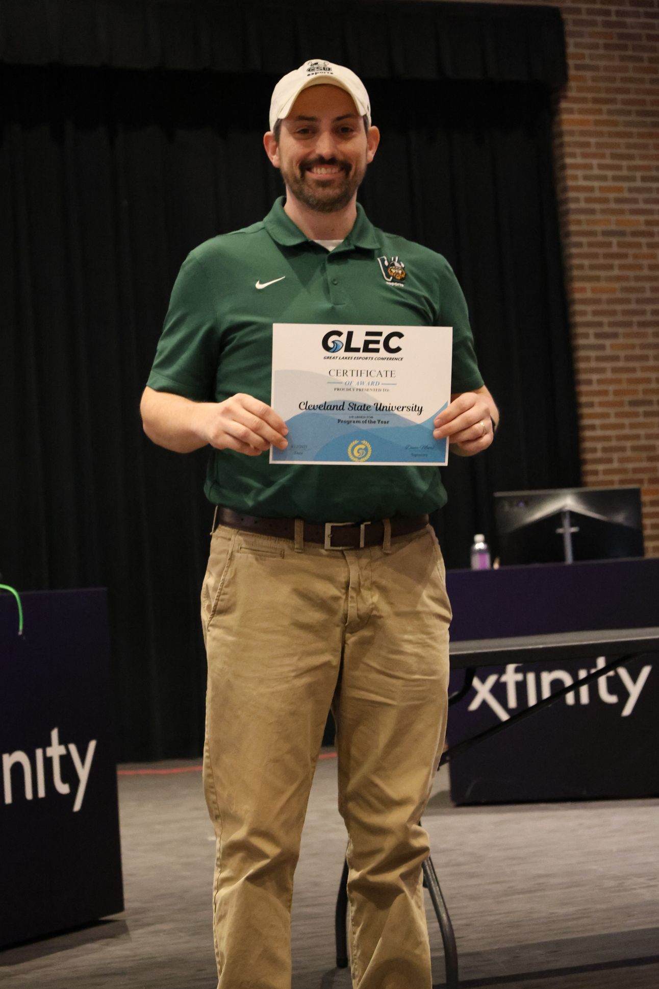 Director of CSU Esports, Pj Farrell | Special shoutout and congratulations to Director, Pj Farrell for being awarded program of the year! We love and appreciate all of your hard work and dedication towards the team. We love you Pj! 💚 From left to right: Lexi P. (doverra), Adam S. (Shoes), Gabby P. (ShamWow), Jackson B. (Nebbyindabag), Maddux B. (Svexx), and Sagan W. (Winter). |
