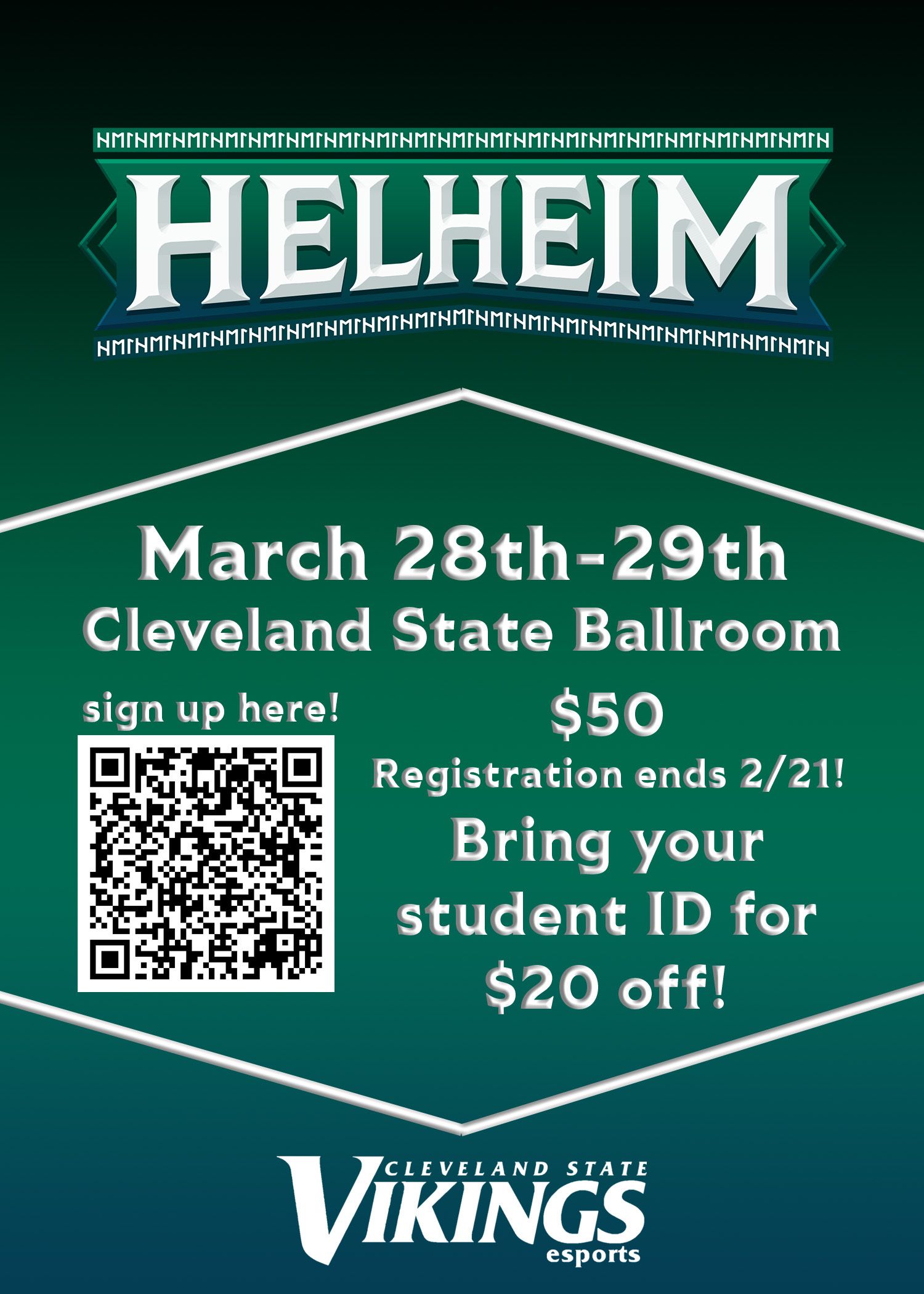 The event will take place over 2 days on March 28-29. Use the QR code in the flyer above to sign up! You won’t want to miss this! 🎮💚