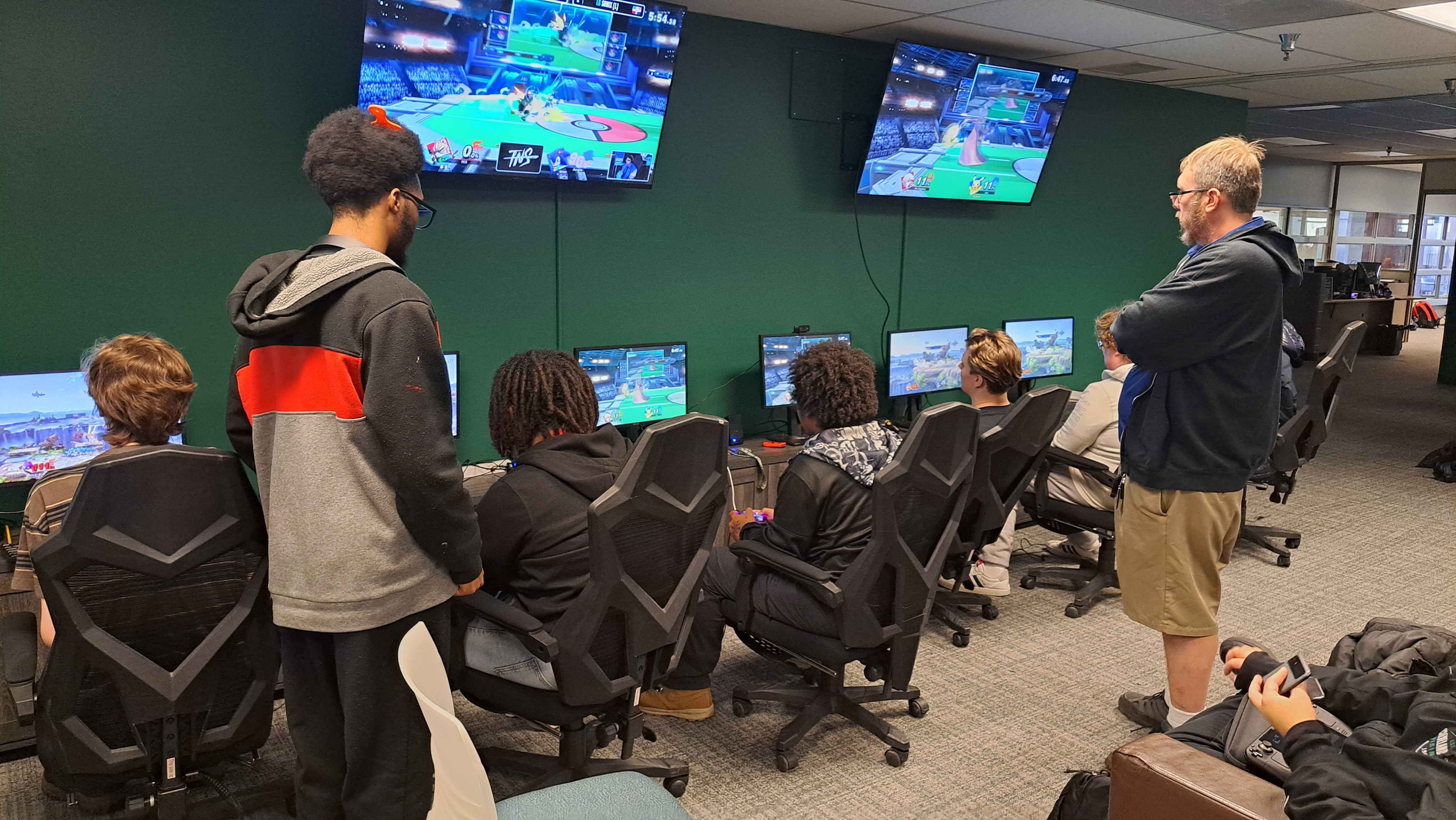 Cleveland High School of Digital Arts came to CSU before their regional final competition, also happening at Cleveland State, to get some coaching from our Smash Ultimate team! With all 5 setups running and 8 collegiate smash players, lots of different matchups were made, sharpening the skills of the Digital Arts players.🎮
