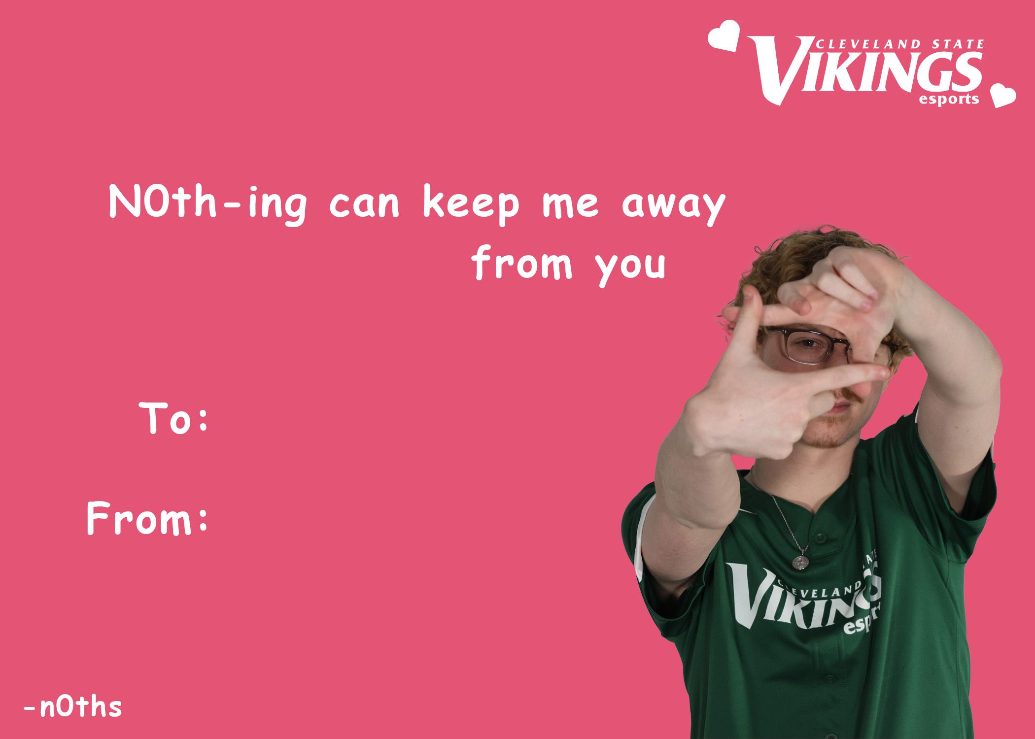 Love is in the air this February, and the Varsity teams are celebrating by giving the community personalized player Valentine’s Day cards! Thanks to the creative genius of the program’s Director of Communications, Lexi Pewitt, each Varsity player had their gamer tag cleverly plugged into a romantic verse, proudly displayed on Valentine’s Day cards. “I’ll love you till the end-(3r)”, “Will you be the Skrub McLady to my Skrub McLord?” These are only a few of our players’ cards, and you can find these clever lines displayed on the TVs right outside the esports lab! Much thanks to Scott Wade, Pj Farrell, Gabby Palmer, Lexi Pewitt, and Julien Medina for coming up with these enchanting puns. With so many cards to choose from, which will you give to your valentine? 💚🩷